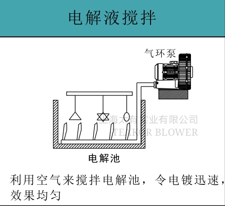 電解液攪拌專用高壓風(fēng)機利用空氣來攪拌電解池,另電鍍迅速,效果均勻。