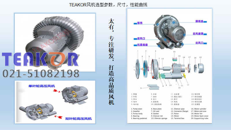 量少的可以選擇單葉輪的小功率風機,量多的、輸送距離長的,可以選用雙葉輪的大功率高壓風機,最大功率可以達到30KW.